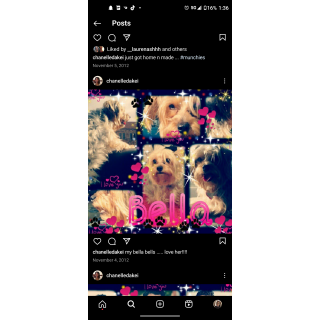 Bella was a very energetic dog in her earlier years, she loved to explore , and wander off to do just that. As a puppy Bella’s pitbull brother “Kujo” dug a whole big enough for her to escape and Bella went missing for 2 weeks. After posting multiple flyers, making phone calls, and putting out the word that there was a reward for her return, Bella finally made her way back HOME.