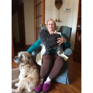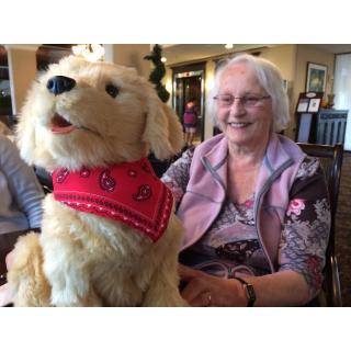 This photo was taken on Paula's 84th birthday last October. Her new puppy, Sandy, brought her so much happiness during the last months of her life. Thanks to 'Joy for All' Companions for creating this loving friend.